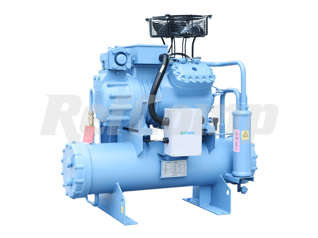 Snowman use RefComp SP compressors for this series of units. The power range is 6- 160HP. Per the request of the customers, the HP of the unit can be as high as 240HP. Units configuration is flexible: units can packaged with water- cooled condenser, air- cooled condenser orwithout  condenser. With many years of experience, the units are user- friendly: suction port, drainage port and oil charge port are all included, rendering easy maintenance   and replacement. Components of the units: RefComp compressor, oil separator, (condenser), suction accumulator, economizer, liquid receiver, control center,  etc..